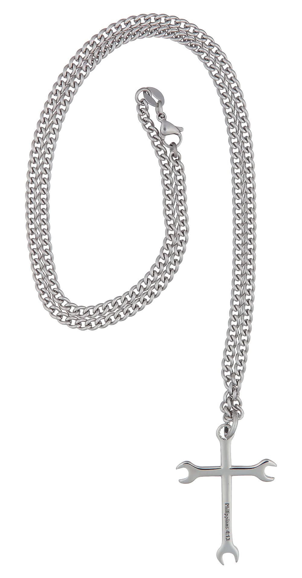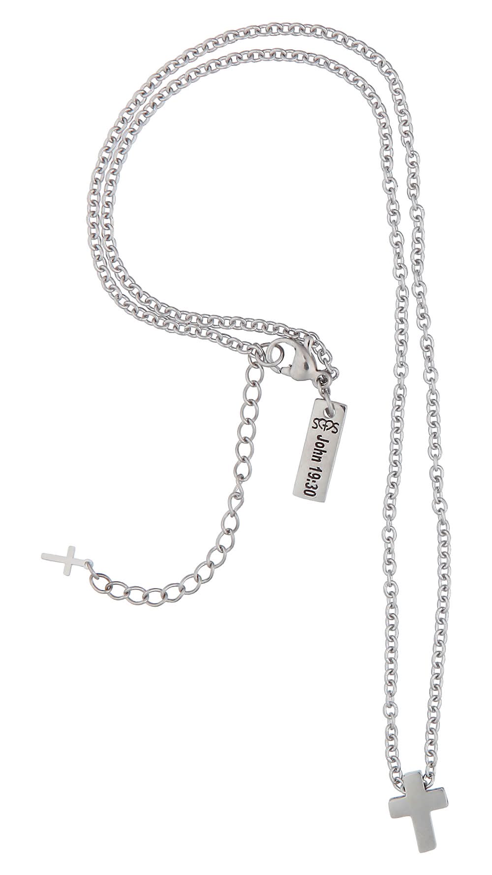 Religious Theme Sterling Silver Horizontal Cross Station Necklace, 16-19 in