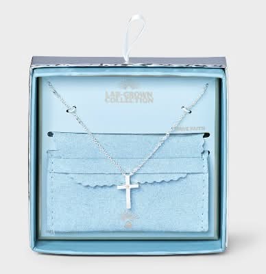 Plated Lab-Grown Diamond Cross Pendant Necklace, Silver