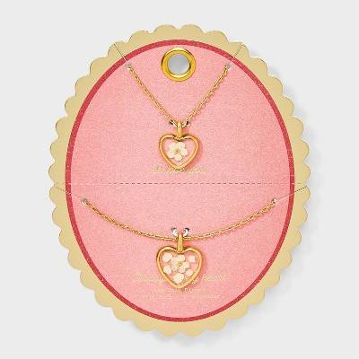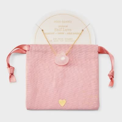 A New Day Valentine's Day 14k Gold Quartz Heart Slider Pendant Necklace, Gold-Pink