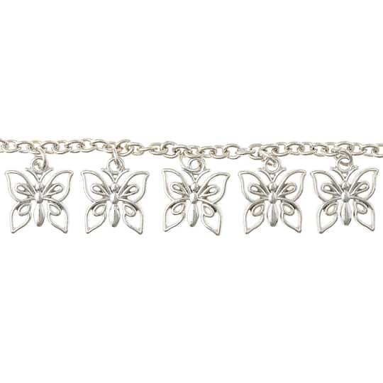 Bead Landing Iron Butterfly Necklace With 12 Beads, 7 In, Silver