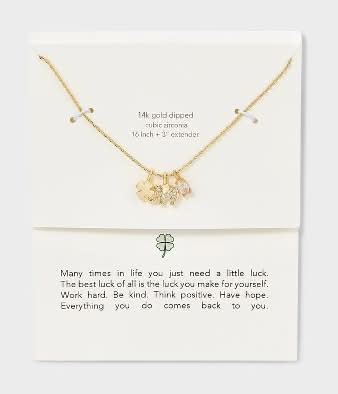 14K Gold Dipped Lucky Clover Cubic Zirconia Elephant Charm Necklace, 16-19 in
