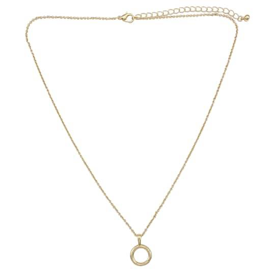 Bead Landing Cable Necklace With Circle Charm Holder, Gold