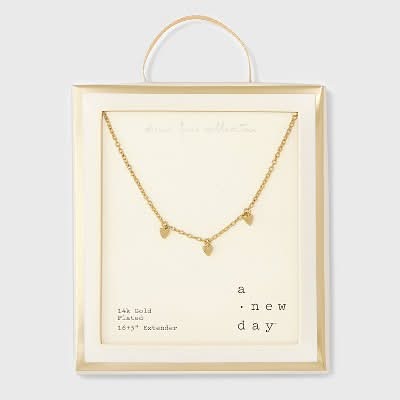A New Day Valentines Day 14k Gold Plated Brass Polished 3 Heart Dangle Necklace