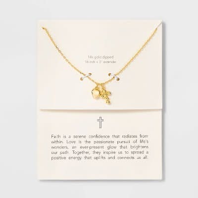 A New Day 14K Gold Plated Stationed Cross Pendant Necklace, 16 in