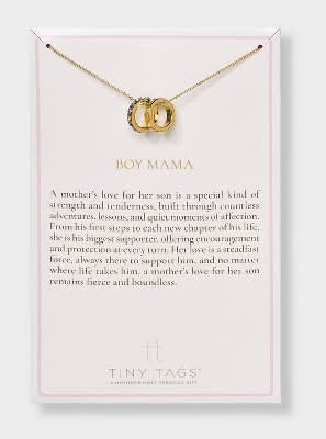 Tiny Tags 14K Gold Ion Plated Rhinestone Boy Mama Circle Pendant Necklace