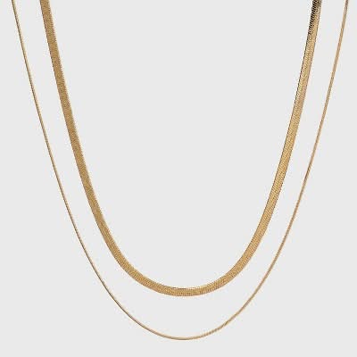 A New Day 14K Gold Plated Duo Herringbone Chain Necklace Set (2 ct)