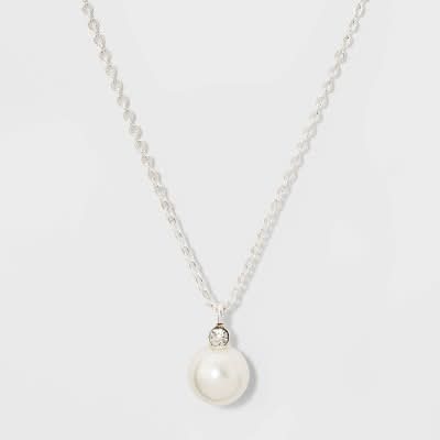 A New Day Pearl & Rhinestone Pendant Necklace, 16 in, Silver