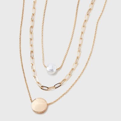 A New Day 3 Row With Pearl & Coin Necklace, Gold