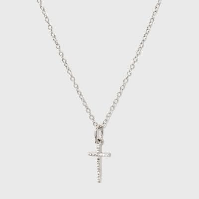 A New Day Sterling Silver Pave Cubic Zirconia Cross Pendant Necklace, 18 in, Clear