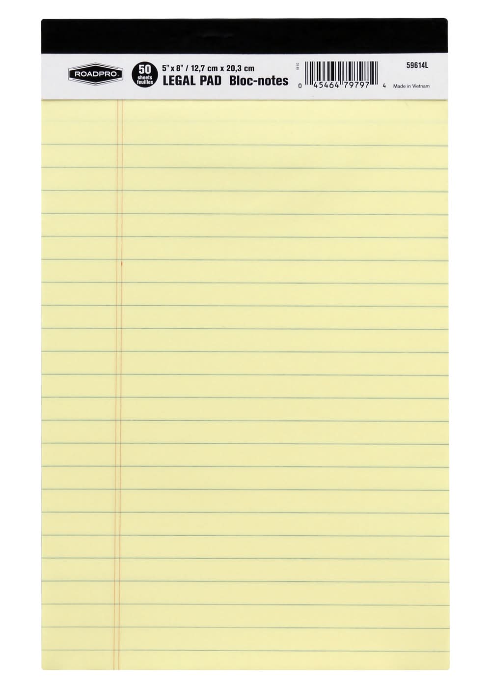 ROADPRO Legal Pad, 12.7 cm x 20.3 cm (50 ct)