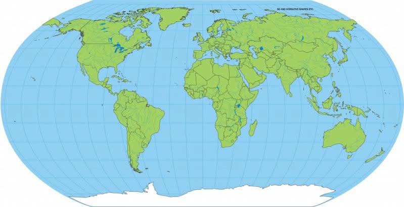 Creative Shapes Notepad, Unlabeled World Practice Map 30 Sheets 9'' X 19''
