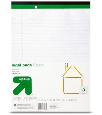 Staples Mini Legal Notepad Narrow Ruled 150 Sheets Pad, 3.5in x 5.5in (3 ct)