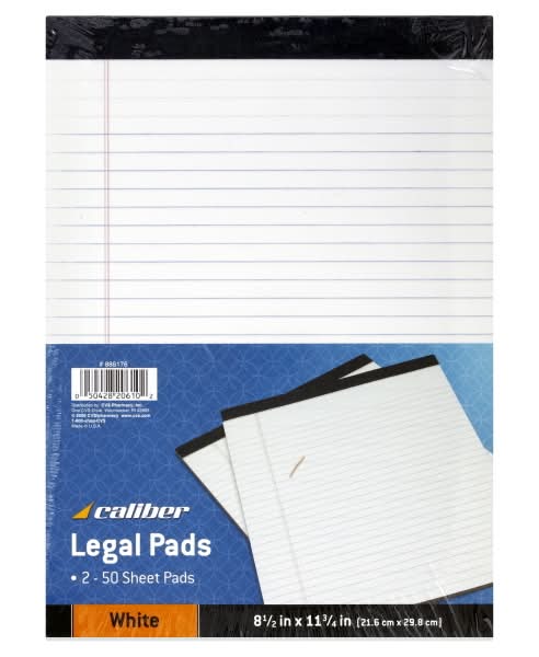 Caliber Legal Pads, 8 1/2 x 11 3/4 in., White (50 ct)