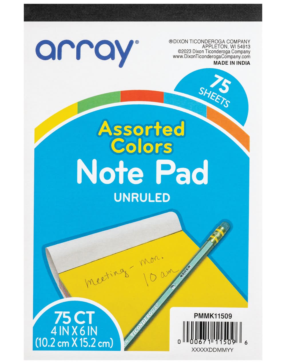 Array Unruled Note Pad, 4x6 in, Assorted (75 ct)