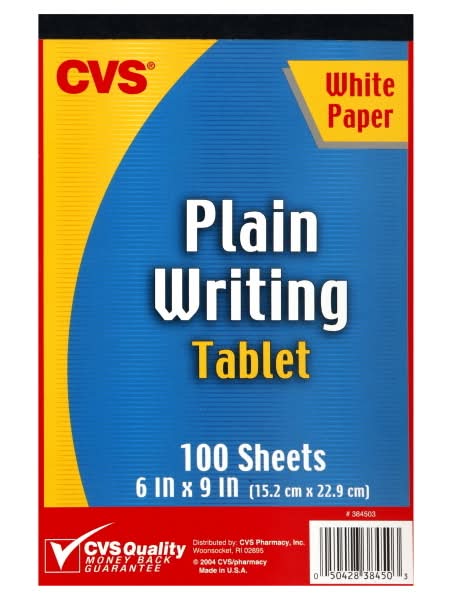 CVS Pharmacy White Paper Plain Writing Tablet, 6 x 9 in (100 ct)