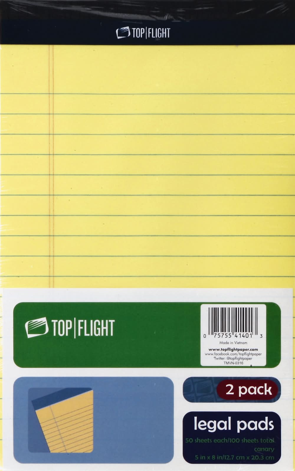 Top Flight Legal Pads Sheets (5.8 oz, 2 ct)