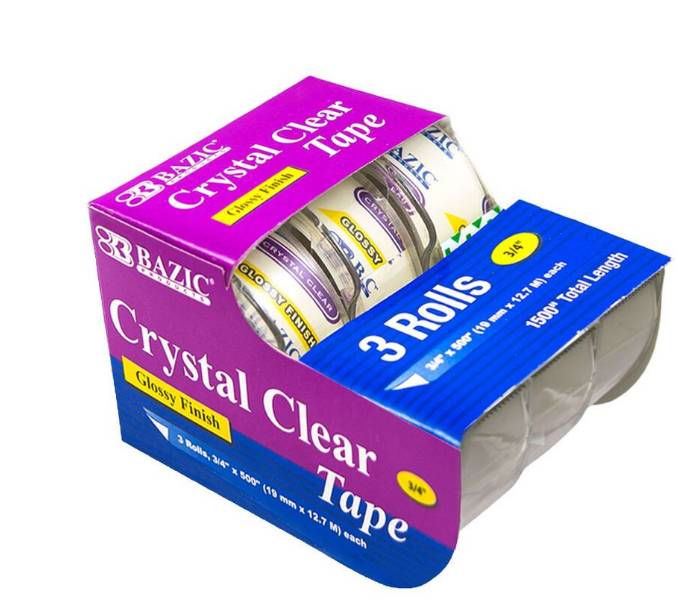 Bazic Products Crystal Clear Tape, 3/4" x 500" (3 ct)