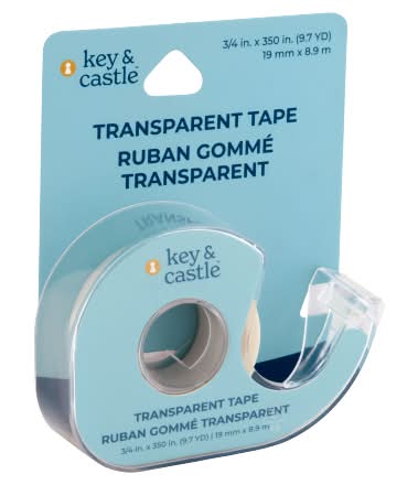 Key & Castle Transparent Tape, 3/4X350 in, Clear-White