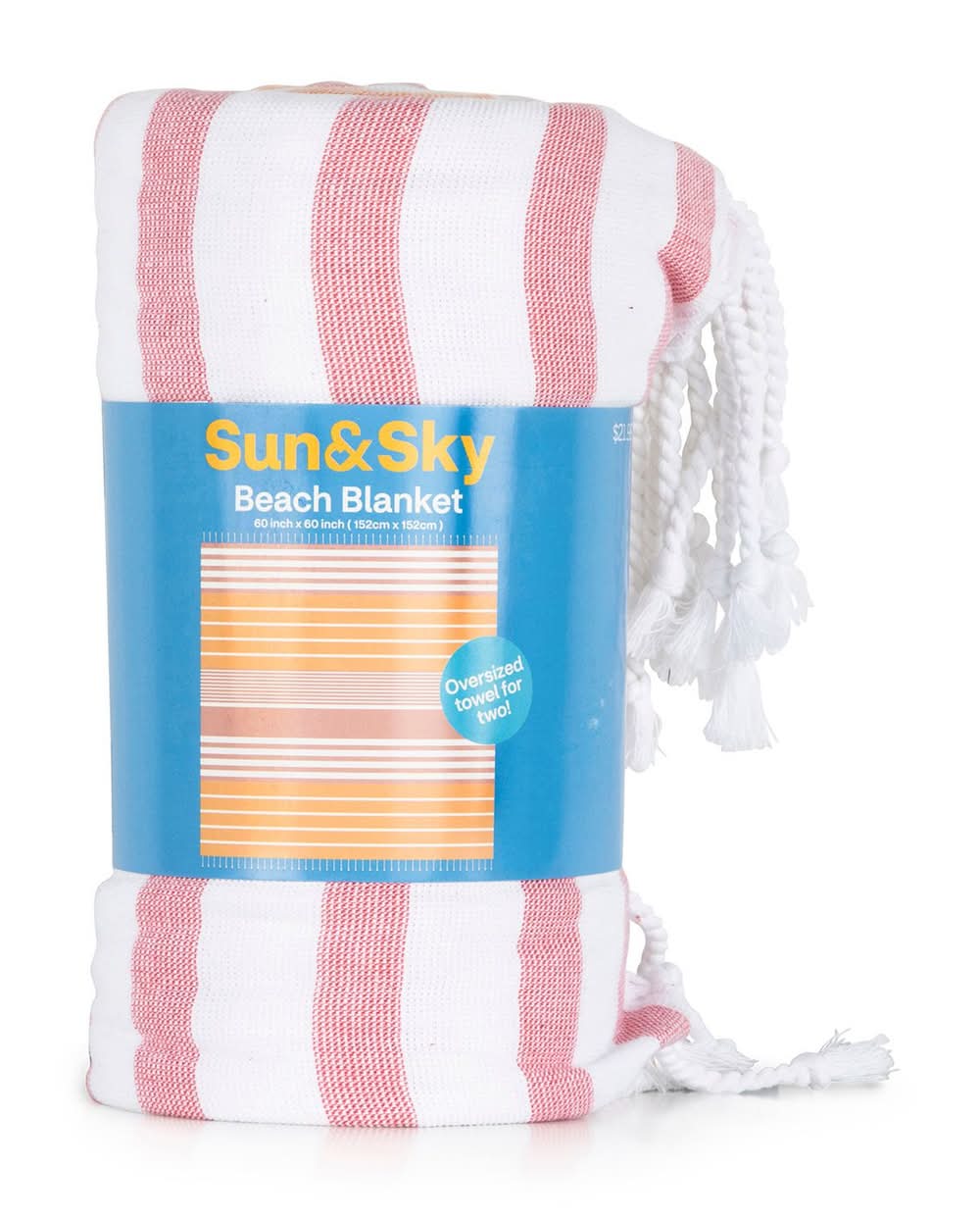 Sun & Sky Hammam Beach Blanket, 60x60 in, Pink-Orange Stripe