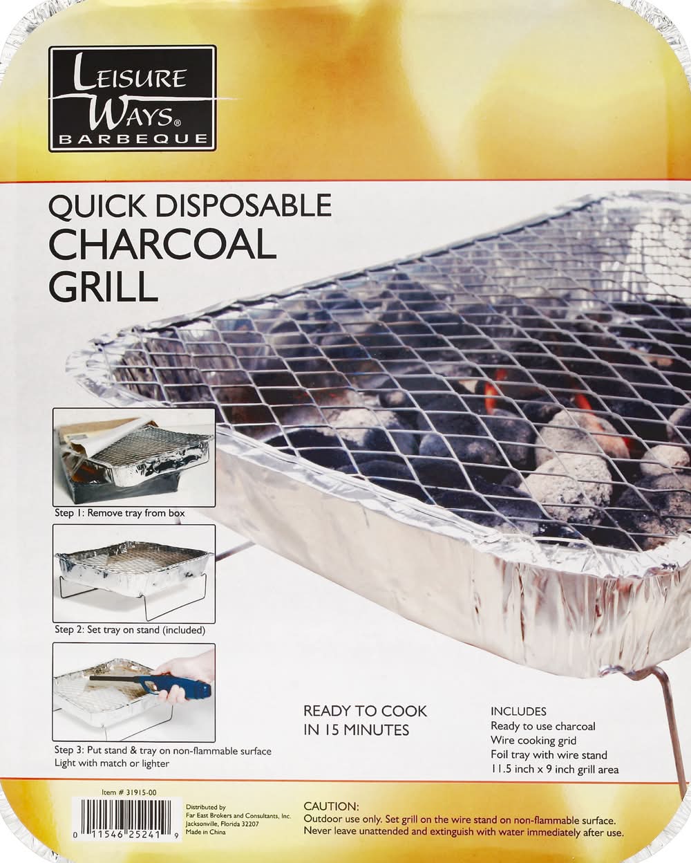 Leisure Ways Barbeque Quick Disposable Charcoal Grill, 11.5 inch x 9 inch