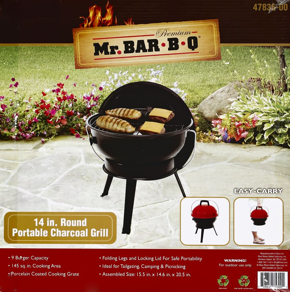Mr. Bar-B-Q Round Portable Charcoal Grill, 14 inc, Black