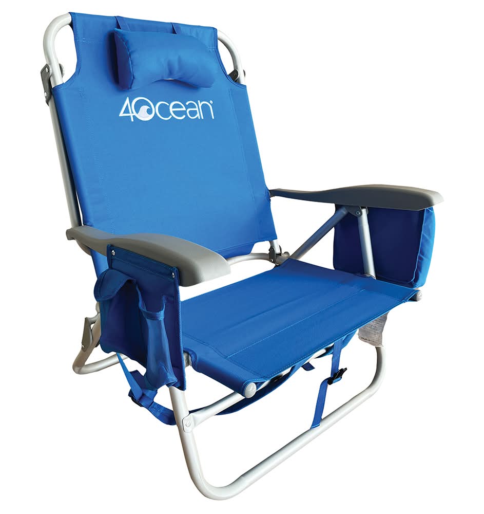 4ocean Polyester Silver Folding Beach Chair, Blue