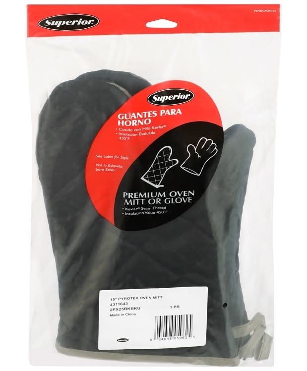 Superior Premium Pyrotex Oven Mitt or Glove, 15 In, Black