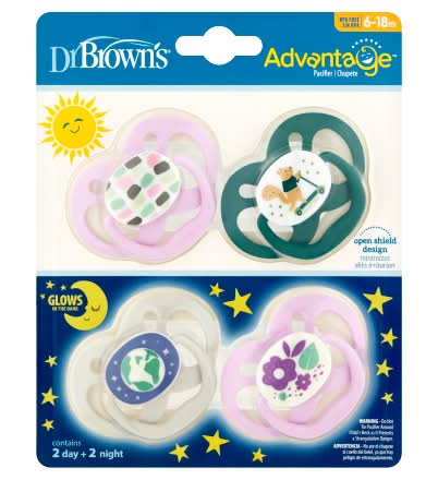 Dr. Brown's Advantage Day & Night Pacifier For 6-18 m, Assorted (4 ct)