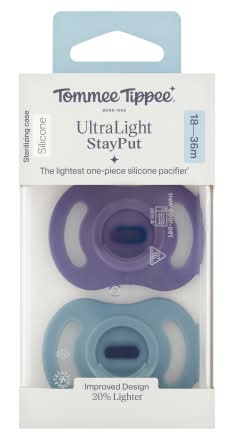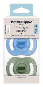 Tommee Tippee Ultra Light Stayput Silicone Pacifier, 18-36 Months, Blue-Green (2 ct)