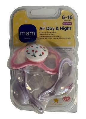 MAM Air Day & Night Pacifier 6-16 Months, Pink-Purple (3 ct)