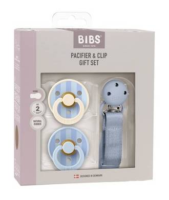 BIBS Pacifier & Clip Gift Set 0-24 m, Size 2, Dusty Blue Stripe (3 ct)