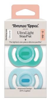 Tommee Tippee Ultra Light Stay Put Silicone Pacifier, 0-6 M, Green-Blue (2 ct)