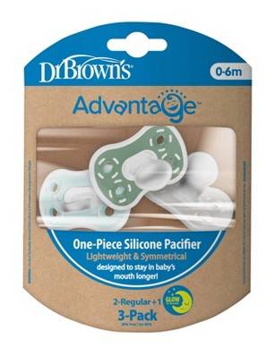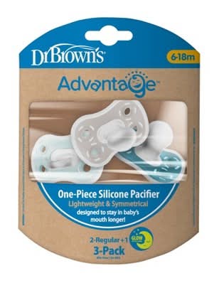 Dr. Brown's Advantage One-Piece Lightweight Silicone Pacifier, 0-6 M, Assorted (3 ct)
