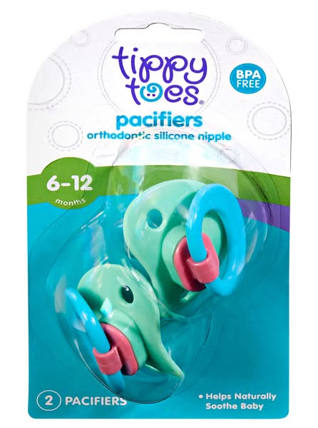 Tippy Toes Baby Pacifiers Orthodonitic Silicone Nipple, 6-12 M (2 ct)