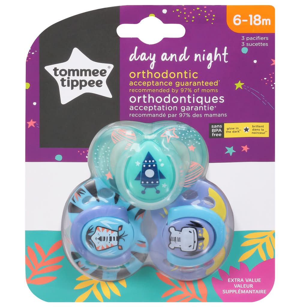 Tommee Tippee Day & Night Glow in Dark Pacifiers, 6-18 Months (3 ct)
