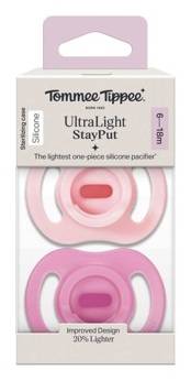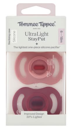 Tommee Tippee Ultra Light Stay Put Silicone Pacifier, 6-18 m, Pink-Purple (2 ct)
