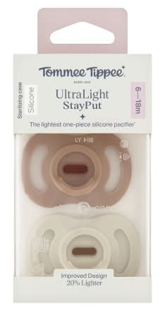 Tommee Tippee Ultra Light Stayput Silicone Pacifier 6-18 Months, Brown-White (2 ct)