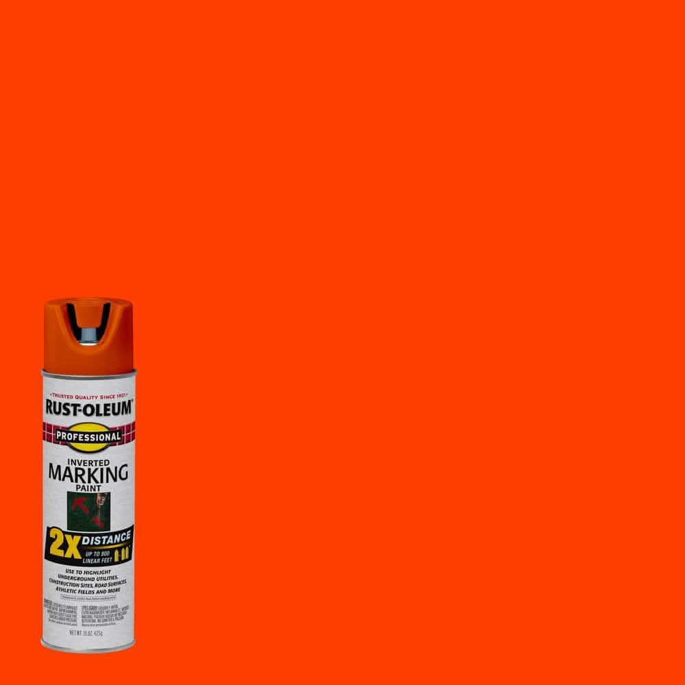 Rust-Oleum Professional 2x Distance Inverted Marking Spray Paint, Fluorescent Red Orange (15 oz)
