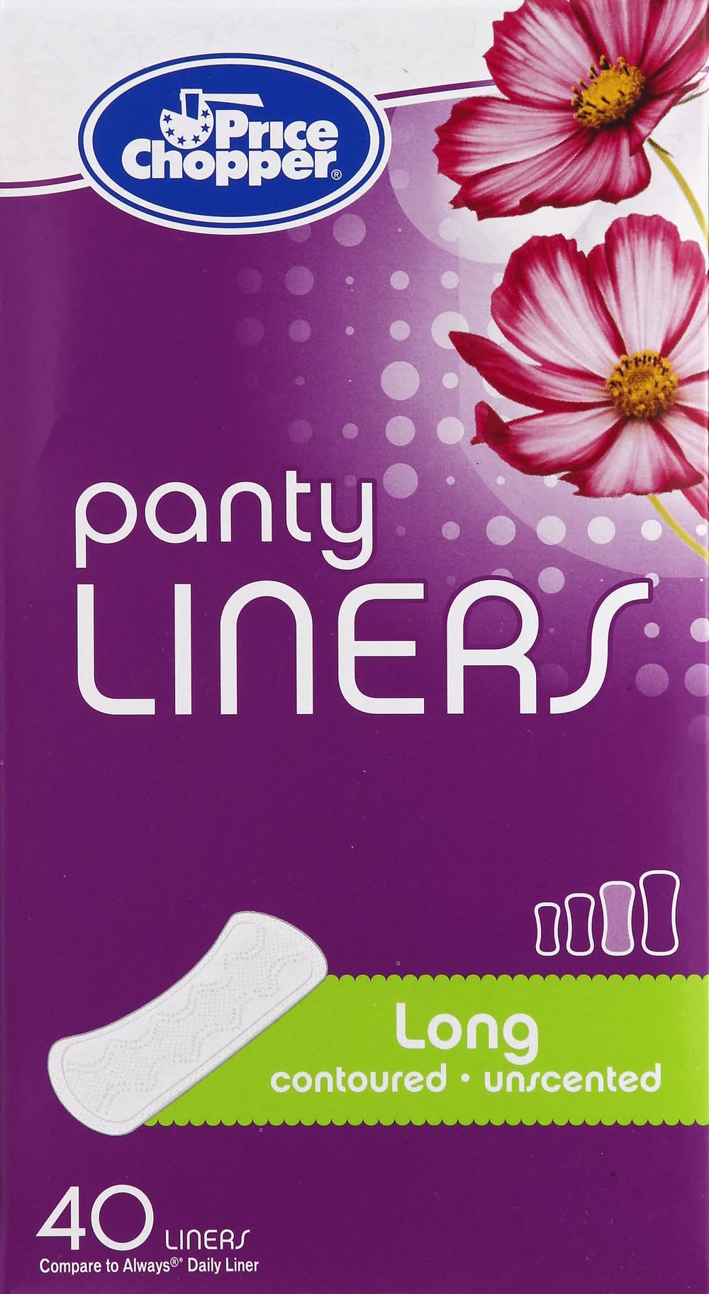 Price Chopper Contoured Unscented Panty Liners, Long (40 ct)
