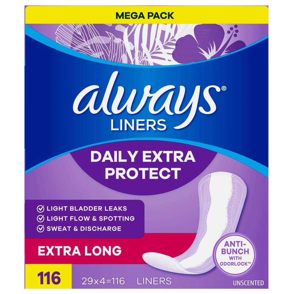 Always Anti-Bunch Xtra Protection Daily Liners Unscented, XL (116 ct)