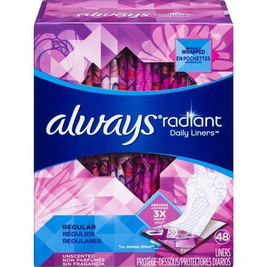 Always Radiant Daily Liners Unscented Regular Absorbency Liners
