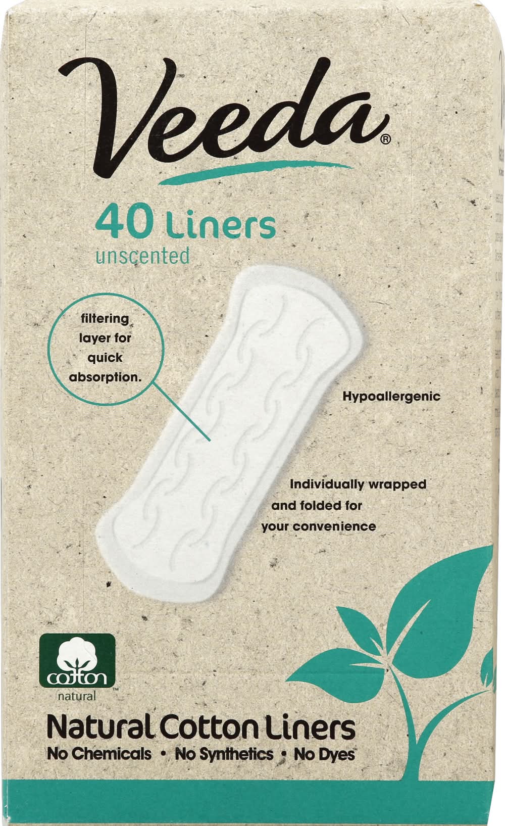 VEEDA Natural Unscented Cotton Liners (3.5 oz)