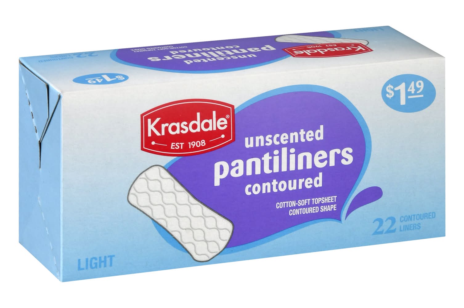 Krasdale Light Contoured Unscented Pantiliners (22 ct)