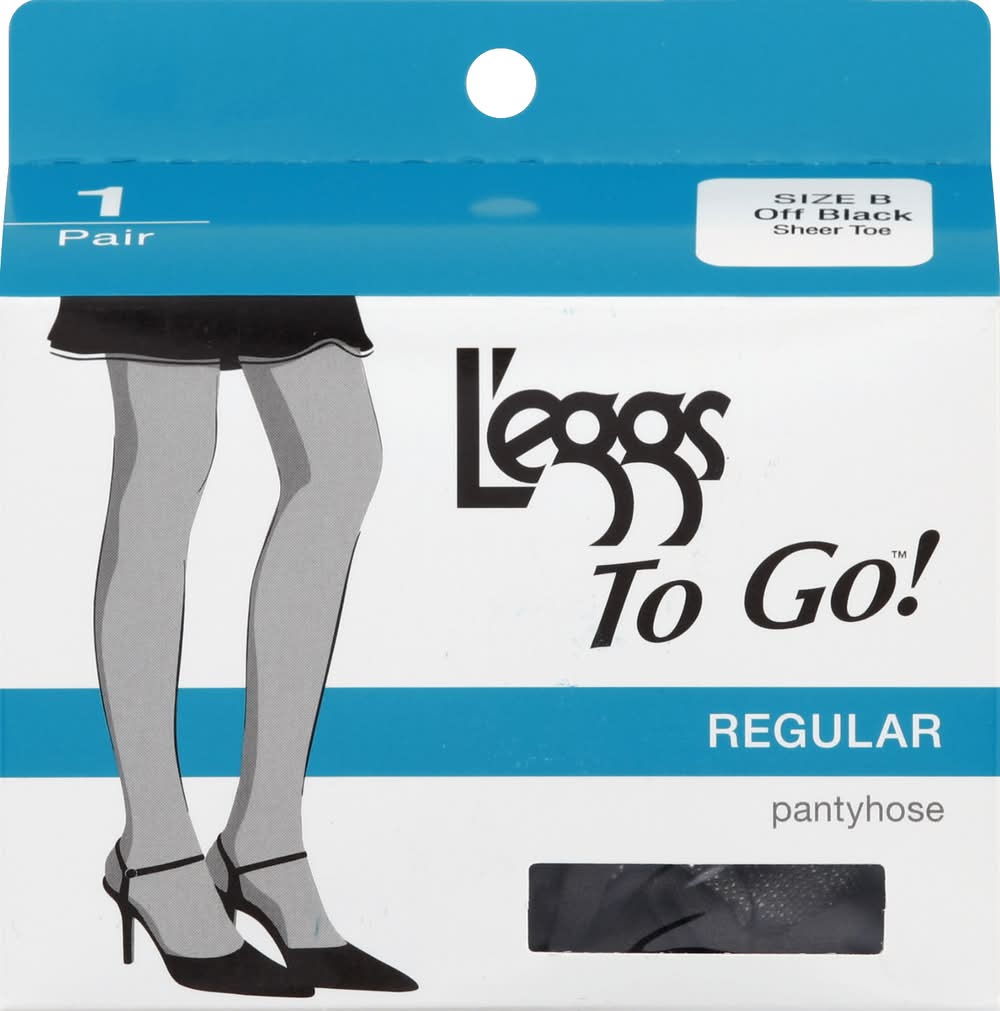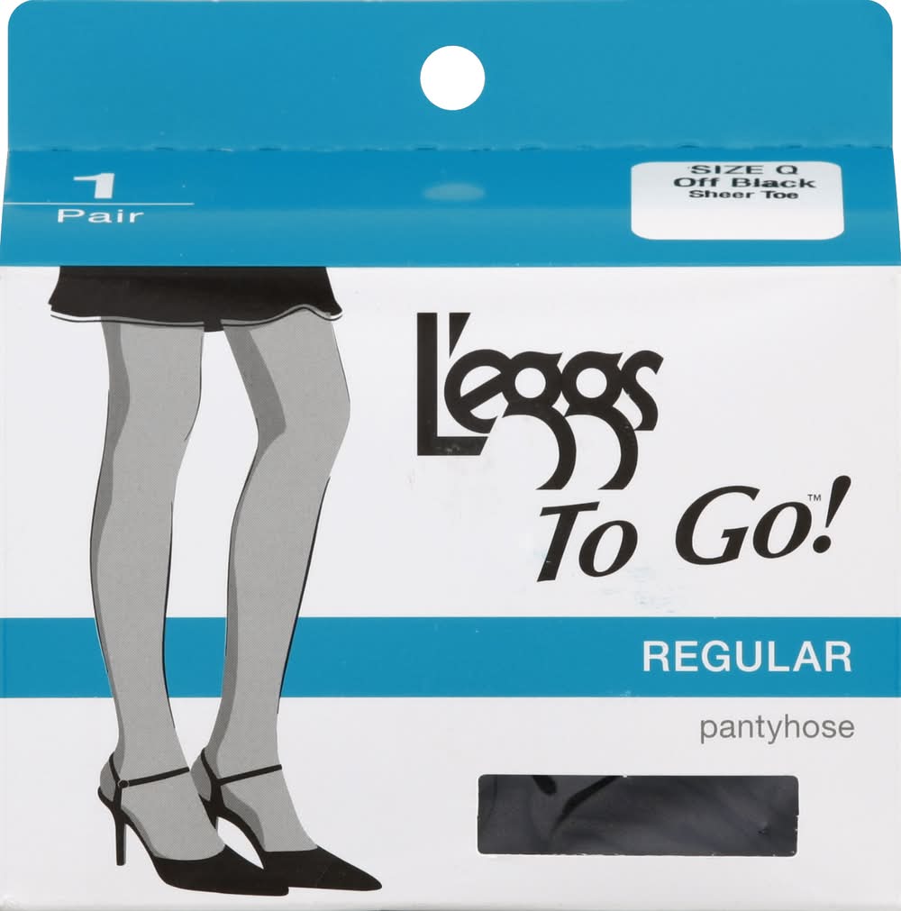 L'eggs To Go! Pantyhose Sheer Toe, Regular Q, Off Black (2 ct)