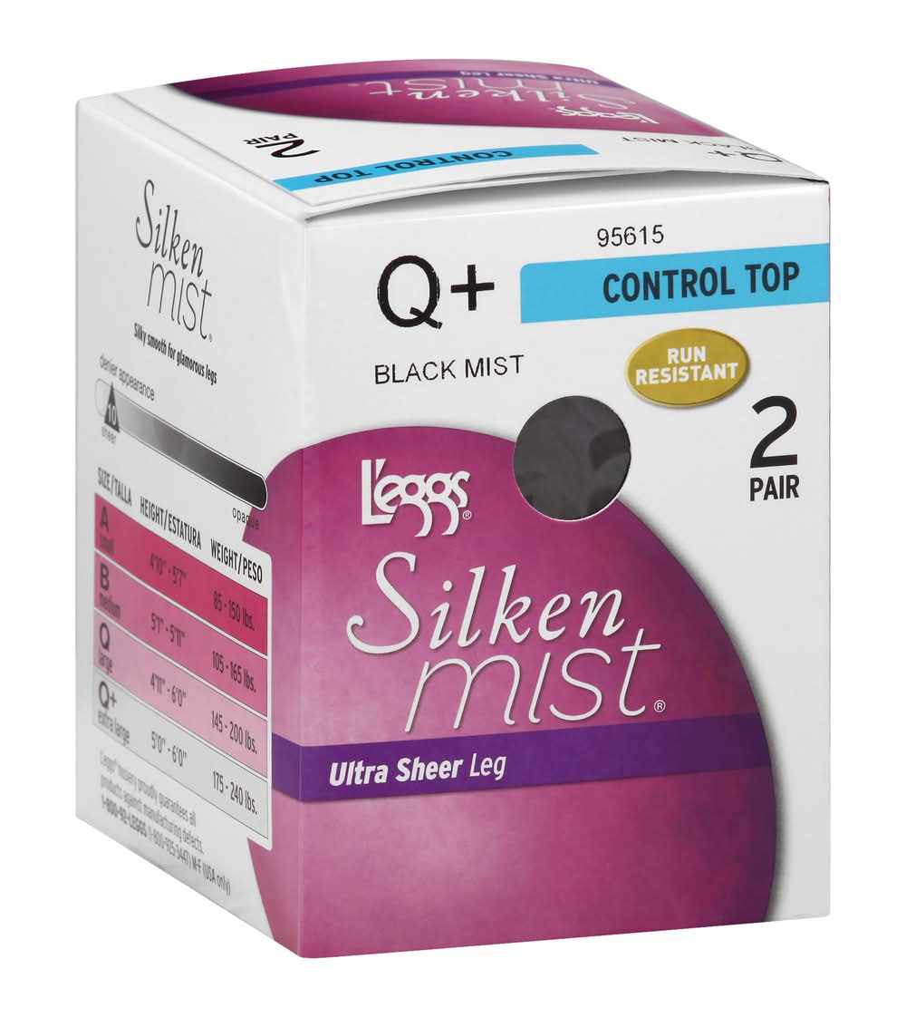 L'eggs Silken Mist Control Top Q Plus Black Mist Ultra Sheer Leg Pantyhose