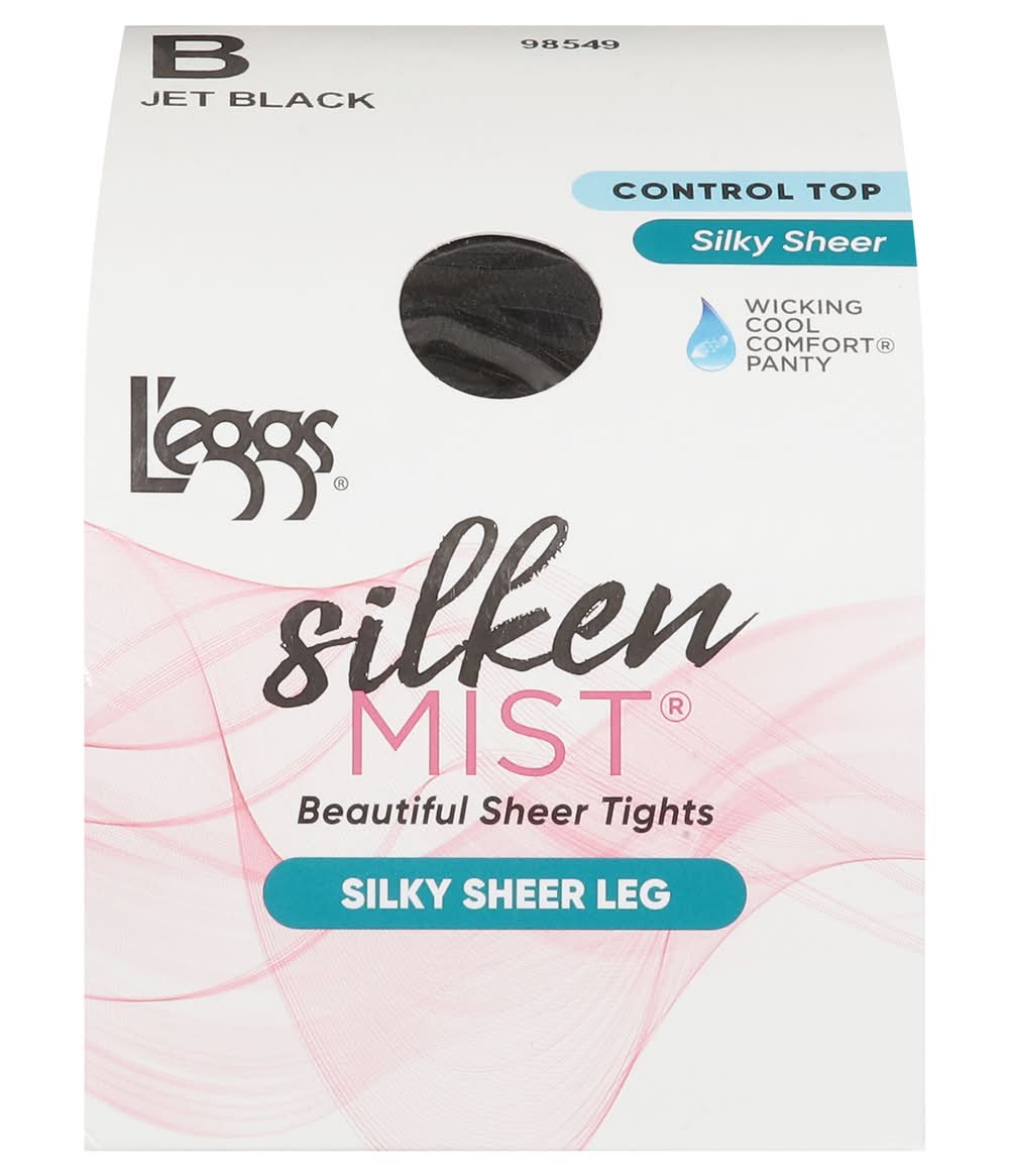 L'eggs Silken Mist Beautiful Sheer Tights Silky Sheer Leg Control Top, Jet Black