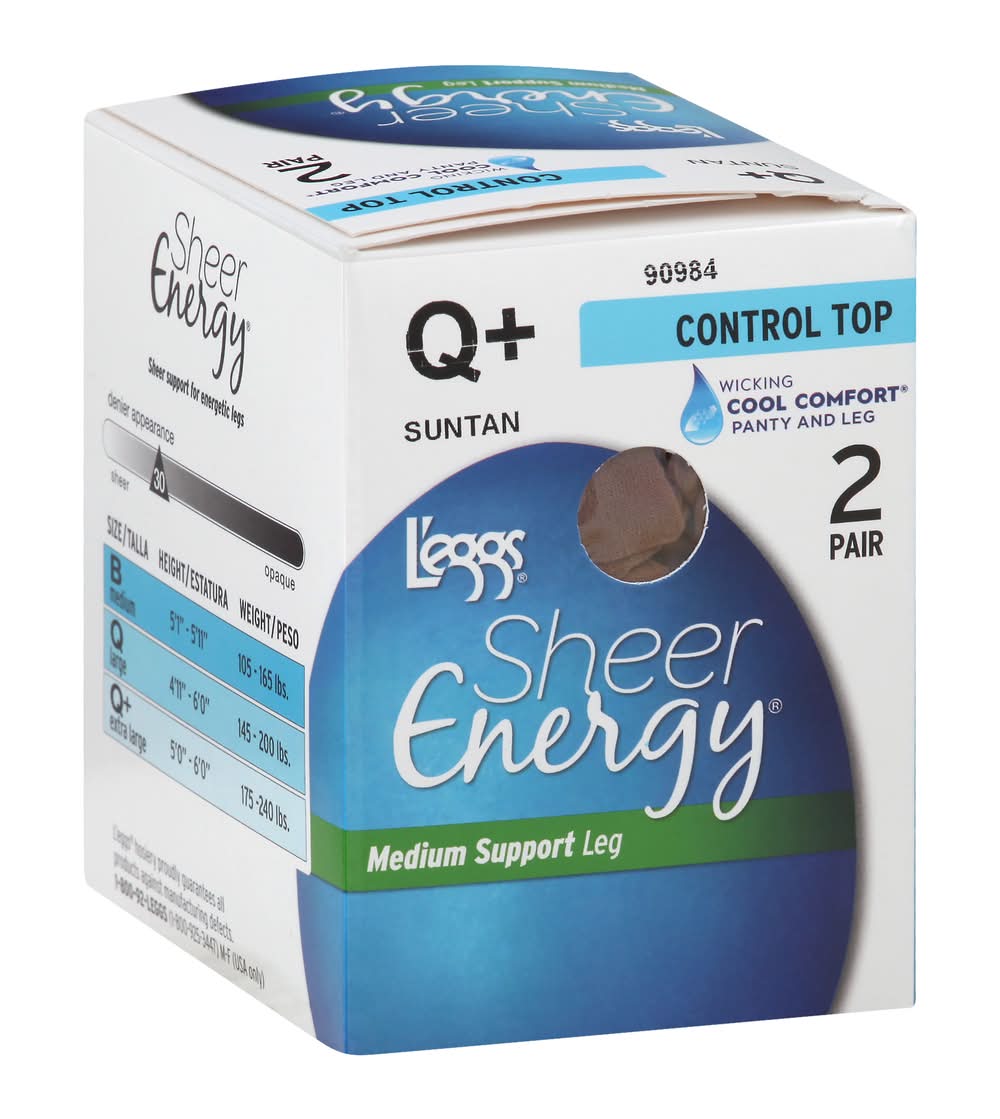 L'eggs Women's Sheer Energy Control Top Sheer Toe Pantyhose, Suntan (2 ct)