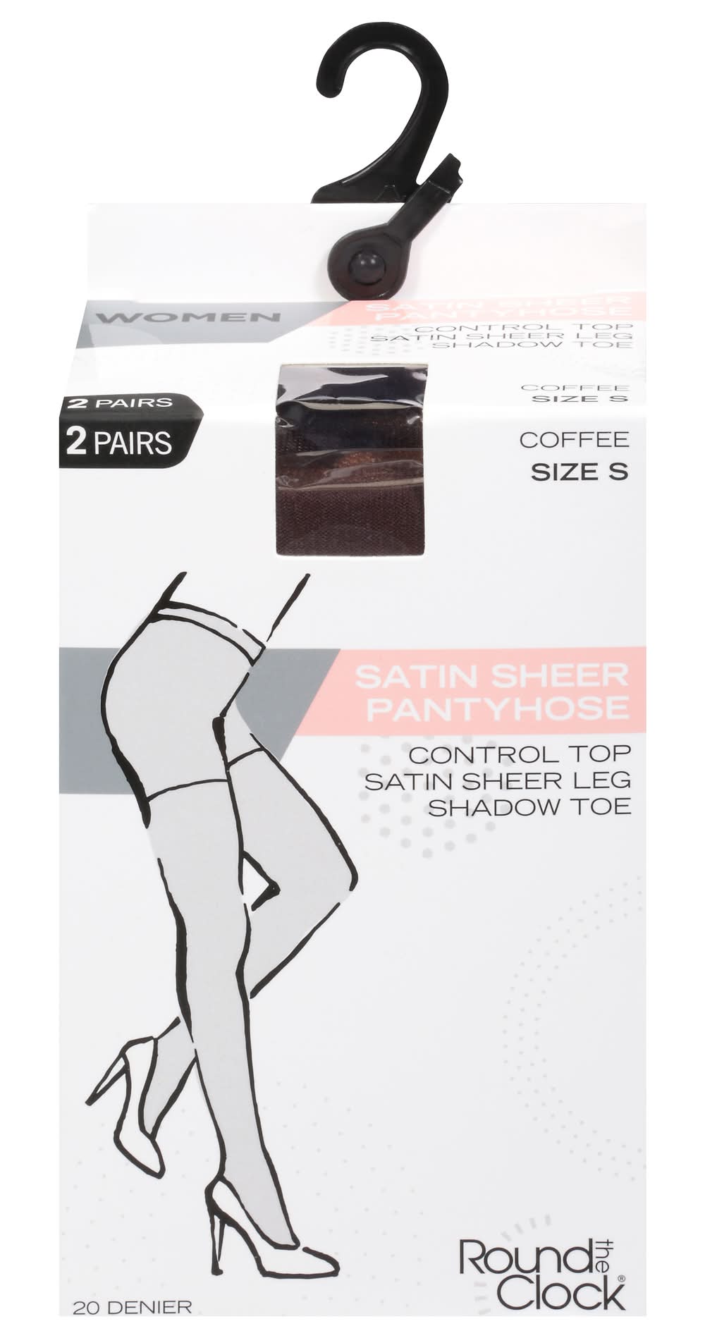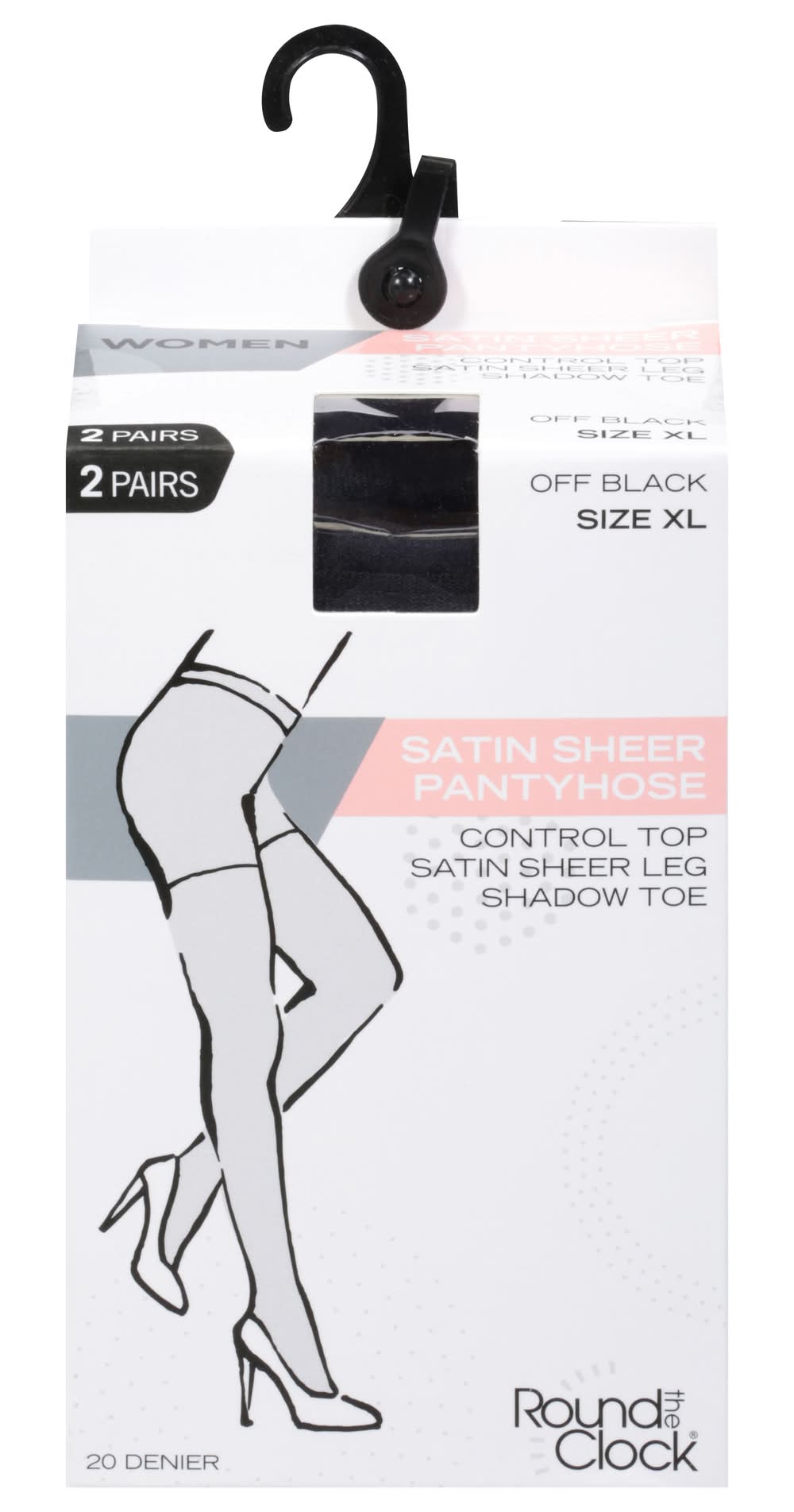 Round the Clock Satin Sheer Pantyhose, Xl, Black (2 ct)