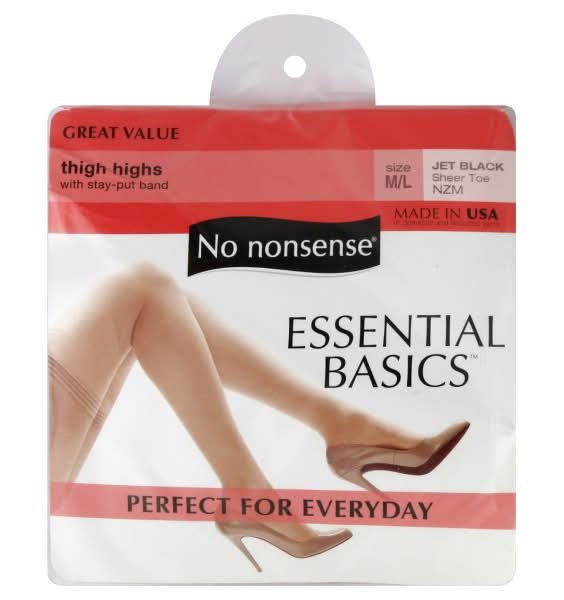 No Nonsense Essential Basics Thigh Highs Pantyhose, M/L, Jet Black