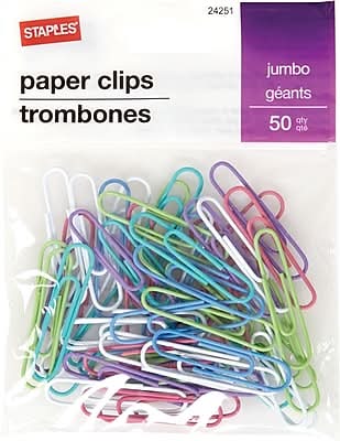 Staples Jumbo Paper Clips, Assorted (50 ct)